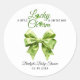 Afortunadamente el encanto salta la proa verde con el trébol verde St. Patrick's Day pegatina irlandés de la ducha para chicas. Celebre la llegada de su pequeño y afortunado encanto con este adorable pegatina de ducha con temática de San Patricio. Un elegante arco de coqueta verde sabio, decorado con tréboles verdes brillantes, le da un toque de fantasía irlandesa. También está el texto "Un poco de encanto afortunado está en camino", que usa shamrock para reemplazar dos letras y crear un ambiente alegre.