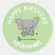 Pegatina Redonda Agradable bebé elefante personalizado cumpleaños