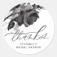Envía agradecimientos con esta etiqueta personalizable para el baño de novia. Cuenta con rosas negras a la acuarela. Personaliza añadiendo tus datos. Esta etiqueta de agradecimiento floral negra es perfecta para cualquier evento.