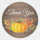 Pegatina redonda clásica de agradecimiento de calabaza de otoño con acuarela rústica