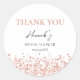 Pegatina redonda clásica de agradecimiento de despedida de soltera con brillo de oro rosa