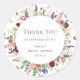 Pegatina Redonda Agradecimiento de mariposas florales moradas rosad