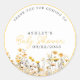 Muestre su apreciación con estilo con nuestros Pegatinas redondos clásicos del Boho Baby Shower de Flor Silvestre Amarillo. Estos pegatinas están bellamente adornados con flores silvestres amarillas y un adorno dorado, perfecto para añadir un toque de elegancia y gratitud a tus favores de ducha de bebé o notas de agradecimiento. Cada pegatina muestra un mensaje sincero, agradeciendo a los invitados por su presencia, lo que añade un toque personal mientras celebran la ocasión. Ideal para sellar sobres o decorar favores de fiesta, estos pegatinas son una forma encantadora de agradecer a los huéspedes.