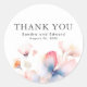 Pegatina Redonda Agradecimiento Floral Moderno Azul Polvo y Rosa