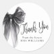 Elegantes etiquetas de agradecimiento que muestran un lazo negro de acuarela en estilo coquette. Perfectas para celebraciones de despedida de soltera con el tema 'Ella está atando el nudo'.