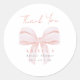 Pegatinas modernas de agradecimiento para ducha de novia con un lazo de acuarela rosa grande y "Gracias" en letra estilo manuscrita.