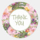 Pegatina Redonda Agradecimientos a las hojas verdes moradas rosadas