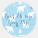 Pegatinas redondas clásicas con adorables osos polares y copos de nieve que caen sobre un fondo azul hielo con tu mensaje en una fuente de letra azul grisáceo. Perfectas para sellos de sobres y etiquetas de regalos.