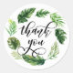 Personalizable gracias pegatina con flores de color agua y hojas de patrón o palmas, hojas de plátano y otras hojas tropicales. Este pegatina es perfecto para el verano y eventos temáticos. Están disponibles invitaciones coincidentes y otros elementos.