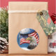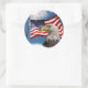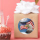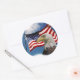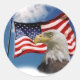 Se muestra una imagen de la bandera estadounidense y un perfil orgulloso de un águila calva.