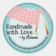 Agujas de punto de punto con pañuelos de punto en el pegatina "hecho a mano con amor" de este tejedor para regalos o para la venta de artesanías, personalizadas con tu texto, fuentes y esquema de colores.