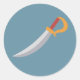 Agrega un toque de pirata a tu fiesta con esta pegatina redonda que presenta la espada de un pirata. ¡Genial para sellar sobres, decorar favores de fiesta o como un pequeño premio!