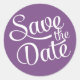 Pegatina Redonda Ahorre la fecha de escritura blanca y morada oscur