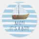Pegatina Redonda Ahoy es un niño azul Sailboat baby ducha