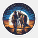 Vaquera y caballo en el Pegatina retro de Guay al atardecer
