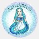 Pegatinas del horóscopo, dama sosteniendo un jarrón de agua con el pelo como agua morada y arte digital azul para el símbolo del horóscopo Aquarius.