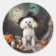 Pegatina Redonda Alarma de Halloween de Bichon Frise Pumpkins