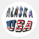 Pegatina Redonda Alaska Estados Unidos Bandera Estadounidense Cita