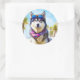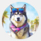 Pegatina Redonda Alaska Malamute en la playa, regalo de verano