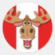 Pegatina Redonda Alce suave en fondo rojo y blanco
