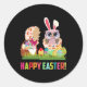 Pegatina Redonda Alegre Lechuza Cuta De Pascua Usando Lomo De Lechu