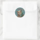 Pegatina Redonda Alegre oso lindo abrazando árbol de Navidad