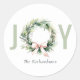 Pegatina Redonda Alegre Rubor Green Navidades Wreath Watercolor