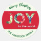 Abróchese su papelería con estos coloridos stickers de Navidad. Llenos de alegría festiva, los coloridos pegatinas son ideales para añadir un toque festivo extra a la papelería, bolsos de fiestas y regalos envueltos. Las palabras "Alegría por el mundo" están en el centro del diseño, sobre un fondo rojo, con "Alegría" relleno con una hoja verde botánica y un diseño floral de poinsettia roja. En la parte superior está el clásico saludo de 'Feliz Navidad' en la tipografía de escritura verde de invierno. Personalice con su(s) apellido(s), nombre comercial u otro texto para ese toque individual extra.