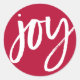Sencillo y moderno pegatina de vacaciones con la palabra "alegría" en un moderno guión escrito a mano. El color de fondo se puede cambiar para que coincida con tu tarjeta de vacaciones o tu color de vacaciones favorito.
