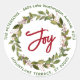 Este pegatina festivo de la dirección de retorno muestra la palabra "Alegría" en escritura manuscrita roja en medio de una corona de Navidades que huirá y bayas, y su nombre y dirección que la rodea. Hermosa expresión para sus sobres y paquetes para la temporada navideña de los Navidades!
