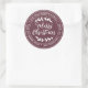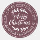 Pegatina redonda de dirección de regreso de Navidad rústica y moderna con tu nombre y dirección en tipografía blanca con estilo que presenta el texto 'Feliz Navidad' en caligrafía manuscrita con un toque elegante de follaje rústico sobre un fondo burgundy. Simplemente agrega el nombre de tu familia y dirección. Diseñado exclusivamente para ti por Happy Dolphin Studio. Si necesitas ayuda o productos coincidentes, por favor contáctanos a través del chat de nuestra tienda. Felices fiestas y Feliz Navidad!