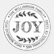 Pegatina redonda de dirección de devolución familiar de Navidad con su nombre y dirección en tipografía negra elegante que presenta el texto ALEGRÍA en tipografía manuscrita con un toque elegante de follaje rústico. Simplemente agregue su nombre y dirección. Diseñado exclusivamente para usted por Happy Dolphin Studio. Si necesita ayuda o productos coincidentes, por favor contáctenos a través de nuestro chat de tienda. Felices fiestas y Feliz Navidad!