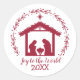 Pegatina Redonda Alegría por la Natividad Roja Mundial