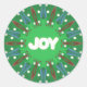 Estos coloridos pegatinas presentan un patrón caleidoscopio de rojo, blanco y azul, sobre verde, con la palabra Alegría, en blanco, impresa en el centro. La palabra "Alegría" está centrada en el fondo verde. Esta es una elección divertida y patriótica para Navidades, Navidades en julio y vacaciones de invierno. Gracias por comprar CherylsArt en Zazzle.