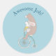Un lindo pegatina de ánimo con un toque de fantasía, que dice ¡Impresionante trabajo! Perfecto para que los profesores premien el buen trabajo de sus alumnos. Este caprichoso ilustracion muestra un conejo blanco de orejas largas, con pantalones amarillos, sentado en las manillares de una bicicleta vintage de estilo antiguo (rueda delantera grande y rueda trasera pequeña). La bicicleta es pedaleada por un gran oso marrón con manchas blancas en la espalda. Adorable y lindo.