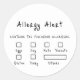 Pegatinas de Alerta Alergia sobre la seguridad alimentaria en blanco y negro.