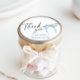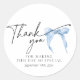 Etiqueta moderna de agradecimiento para bolsas de regalos de Despedida de Soltera con lazo azul polvoriento. Perfecta para una Despedida de Soltera con tema "Ella está atando el nudo".