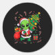 Pegatina Redonda Alien Christmas Tree Lights Xmas Funny Alien