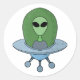 Pegatina Redonda Alien en su pequeña nave espacial