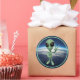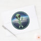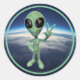 Diseño humorístico de alienígena verde que señala la señal V de la paz: ¡paz mundial, paz global, paz en todo el universo! La gente sonríe cuando ve esta imagen.