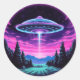 Pegatina Redonda Alien Spaceship Retro Futurista