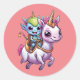 Pegatina Redonda Alienígena espacial Cute montado en unicornio dive