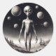 Pegatina Redonda Alienígena espacial en el Ilustracion de ciencia f
