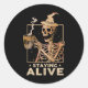 Pegatina Redonda Alive Funny Skeleton Beber café Feliz