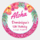 Pegatina Redonda Aloha Luau Rosa Brillo Tropical Hibisco