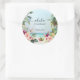 Di gracias con un toque tropical utilizando esta pegatina redonda personalizada con tema de playa "Aloha & Mahalo". Con una escena de isla de acuarela con hibiscos vibrantes, palmeras y detalles de coco, esta pegatina personalizada es perfecta para regalos de invitados de casa de playa, bodas de destino, fiestas hawaianas o bolsas de bienvenida tropicales. Agrega el nombre de tu familia, evento o mensaje personal para un toque memorable de paraíso.