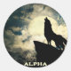 Pegatina Redonda Alpha Wolf Howling en la Luna Completa