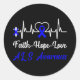 Pegatina Redonda Als Awareness Heartbeat Cruz Cristiana Fe Azul