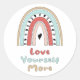 Pegatina Redonda Ama tu mismo más humor arcoiris boho