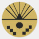 Un sol negro de arte deco surge en un campo dorado. Sello para sobres/pegatina redondo.